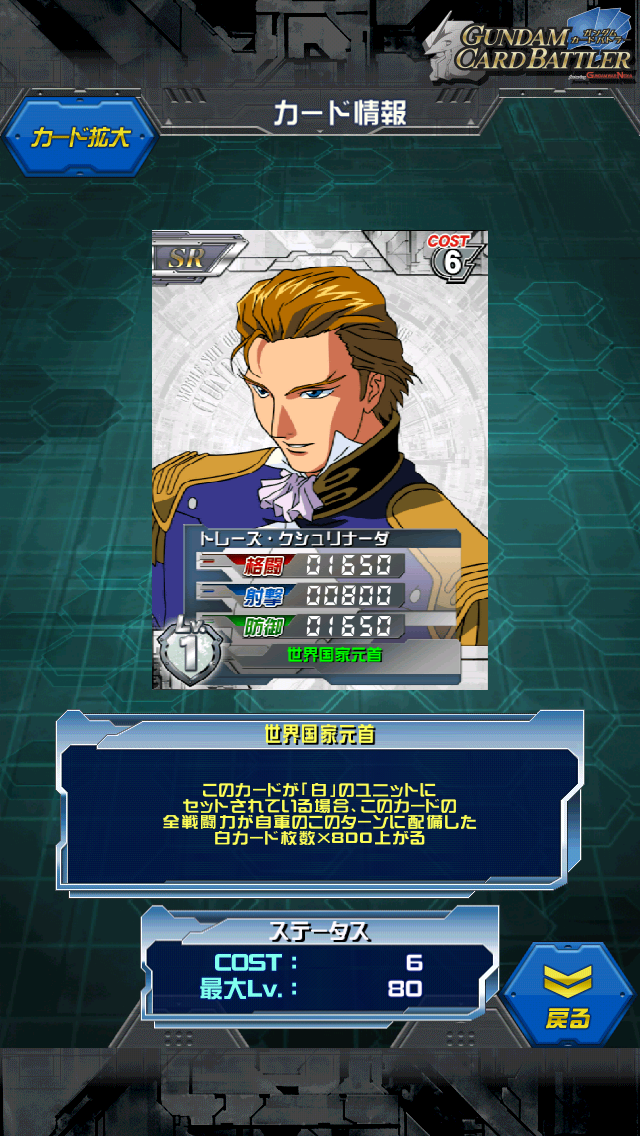 トレーズ・クシュリナーダ 「私は敗者になりたい」 Wイベント 静かなる軌道の薔薇報酬ドロップ ミスターエレガントこと閣下です。 MAX値は3000/1500/3000 スキルは白単ならノーリスクとなり5400/3900/5400となる 格闘防御はもちろん射撃も出来てしまう うーむエレガント 専用機はトールギス2と何気にエピオン。。。リーオーぐらい? このステータスは魅力的なのですが トールギス2では多少勿体ない気がします。 URエピオンを持っててミリアルドが拾えなかった人は乗せるとよいと思います。 食べたパンの数は覚えていなくとも 自分のために戦って死んでいった兵士達の名前と人数を記憶している 「貴様のために何人の人間が死んだと思っているんだ」との問いかけに 「聞きたいかね?昨日までの時点で99822人だ」 「ノベンタ、セプテン、ベンティ、ドーリアン、ワーカー、オットー、みな忘れられぬ人々だ」 OZだけではなく敵軍も覚えているところがエレガントたる所以 戦争は美しくあるべき、という理論から モビルドールで戦争を遊びに使うことが許せないため前線に出るお茶目な閣下 何気に生身の状態でも五飛に勝てるほど高スペック [0回]PR