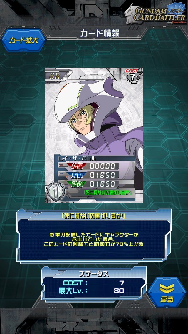 レイ・ザ・バレル 革命の序曲 ジャンクガシャ景品 シンの(数少ない)友人、アムロじゃないレイです。 MAX値は0/3250/3250 相手キャラがいれば0/5525/5525とアムロもびっくりなステータス しかしその分重い… コスト7を入れると何かが犠牲になるのでデッキと要相談 とりあえずレジェンドに乗るために登場したようなカード 少なくとも白ザクには勿体ないので是非レジェンドとセットでお使いください 序盤はブレイズザクファントム 終盤はレジェンドと主に白い機体専門の人 ギルを慕っていた、のだが最後はギルを撃つ・・・ 見ていた当時はちょっとよく分からずポカーンとしてました [0回]PR