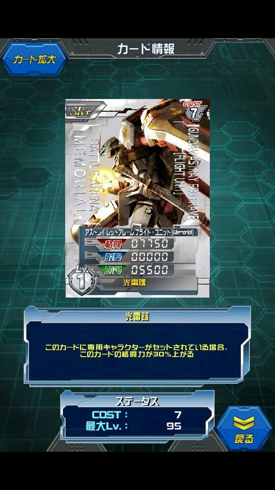 アストレイ レッドフレーム(フライトユニット)(Memorial) 第2回バトルアリーナ1000P交換景品 滑空時間を伸ばすためのレッドフレームの改造機、まだまともな改造 MAX値は11000/0/8000 専用キャラセットで14300/0/8000です。 スキル発動条件は容易 コスト8のナタクやデスサイズEWよりコストが低く 同じ格闘値なので格闘機としては優秀な部類 今回のロウのスキルは1ターン目には発動しないが発動時には 21250/1000/13675と2万オーバーの格闘値 白単で格闘機に困っている方はどうぞどうぞ レッドフレームの魔改造の一歩手前 ストライカーパックのようにフライトユニットを背面に装着した状態 エールストライカーに似てる… レッドフレームってやたら改造されてますよね 他の主人公は乗り換え乗り換えしているというのに… プラモの金型が使える使える [0回]PR