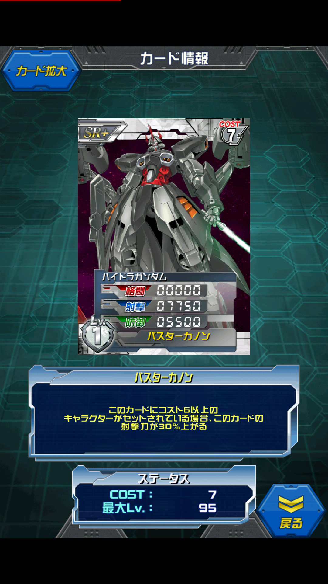 ハイドラガンダム カスタムリーオー+ガンダム(MA)の開発ユニット 意外と今回の目玉ユニットかも MAX値は0/11000/8000 コスト6のキャラセットで0/14300/8000です。 専用パイロットのヴァルダーを乗せると 相手にキャラがいれば 3250/19200/12050 2万に届く勢いです ちょっと残念なのが暗黒の破壊将軍(笑)のヴァルダーが 平均値でコスト6という大型キャラの割にスキルの上昇率は15%と控えめなところ ALL10000でも3250ALLといったちょっと微妙なステータスです 機体は優秀なのにパイロットが限定過ぎて残念なタイプですね [0回]PR