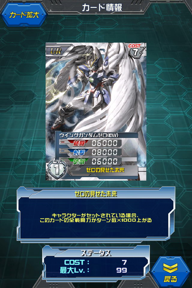 ウイングガンダムゼロ(EW) W大好きshimaさんからの提供カード 私はこのWイベントの頃から始めました(*´▽`*) Wイベントオペレーションメテオのステップアップガシャ景品…だったかな 昔はカスタムと呼ばれていたゼロです MAX値は8000/10500/8000 キャラセットでターン数×1000上がるため3ターン目では11000/13500/11000です。 この平均的ステータスが昔のカードの特徴 これでも強くなったんですよ… 昔はスキルがゼロシステムでターン数×500だったんですよ… 単色が条件だがコスト6でノーリスクALL12000のビルゴが出てきたせいで影が薄い 多色で使えることとスキル発動にキャラを選ばない点は利点ですが 最近単色優遇ユニット、キャラが出てきており LRでもない限り多色より単色のほうが強いデッキが作れるようになっているため 時代の流れに押されている悲しいURの1枚 UR回路、出してあげてください… 勘違いされやすいですがウイングガンダムゼロの改良版ではなく 劇場版の「ウイングガンダムゼロ」です。 劇場版(Endless Waltz)では各機体のデザインが変わっており そのため最近では(EW)と明記されるようになりました どっかのゲームで「カスタム」と銘打ったりするので紛らわしくなっています。 [0回]PR