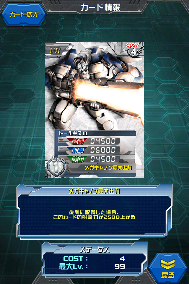 トールギスⅢ W好き白単のshimaさん提供カード 追加カード分は他の方のリクエストなければ 可能な限り紹介させて頂きます(;´∀`) 初出はWイベント オペレーションメテオのステップアップガシャと思います 火消しの風、ウインドの駆るトールギス3代目 MAX値は6500/8500/6500 後列配置で6500/11000/6500です。 出た当時はプレイヤーLvもMAXが100程度でコスト5~6帯のSRが主力だったため コスト6の機体よりも強いコスト4と注目されていたのですが 時代の流れでLvMAXも150になりコスト7~8帯が主力となった今は 穴埋めの役割ぐらいにしか使えない時代に取り残されたURの1枚です。 さらに追い打ちをかけるとまともに乗れるキャラがいません。 ミリアルド、ゼクスは乗る気が無いのか主に格闘防御ステータス ゼクス&ノインはコスト4機体に乗せるには勿体ない… 救いなのはスキル発動に色やキャラ指定が必要無いところです。 全体的なステータスやスキル発動の容易さから言えば優秀な機体なのですが なにぶんパイロット込みでステータス2万を求められる時代になってきており 射撃11000ではとても主力に使えないため 現時点の評価はコスト4最強の穴埋めカード、でしょうか 少なくとも2~3枚必要になることはないと思います 劇場版で登場したトールギスⅢ 別にトールギスのEW版ではなく純粋な3号機 どこに隠してあったのか、 どこからミリアルドは調達したのか、 エピオンはどうした、等色々ありますがそれはそれ、これはこれ 劇中ではMDのみを破壊し、パイロットを殺さないようコクピットを避け続けて サーペント部隊と戦った。 よく言われるのはここで一番凄いのはノイン&トーラスじゃないか? ガンダムの連中はともかくトーラスという旧式で戦い続けたノインさん最強説 …きっとトールギスⅢの活躍があってこその戦果ですね、きっと [0回]PR