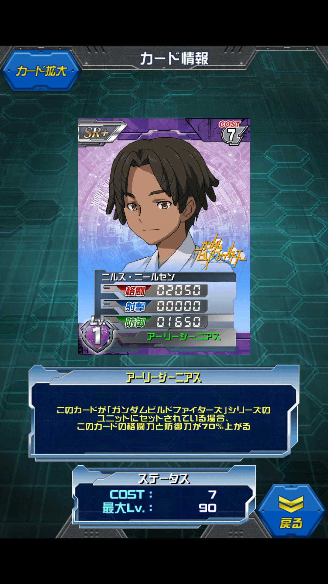ニルス・ニールセン ビルドファイターズ アリーナイベントガシャ景品 プラウスキー粒子を研究するガンプラビルダー MAX値は3750/0/3000 ビルドファイターズシリーズセットで6375/0/5100 コスト7パイロットが珍しくなくなってきましたね セットするだけで格闘6000 うーんお手軽。 ただビルドファイターズシリーズに限られるので 戦国アストレイ、あとはアビゴルバインぐらいかなぁ… 今後ビルドファイターズが増えるのかどうかは怪しいので 使い勝手としてはかなーりイマイチかも ちなみに専用機は戦国アストレイ セットすると コスト9/7 26975/1000/15600 戦国アストレイのビルダー ですがガンプラ作りよりもプラウスキー粒子の研究が大切で 単なるお遊びとしか捉えていなかった。 ただイオリやレイジと戦うことで ガンプラが好きな事に気づく。 ちなみに他にもSD騎士ガンダムを作成したこともある。 アーリージーニアス、若き天才は伊達じゃないですね [1回]