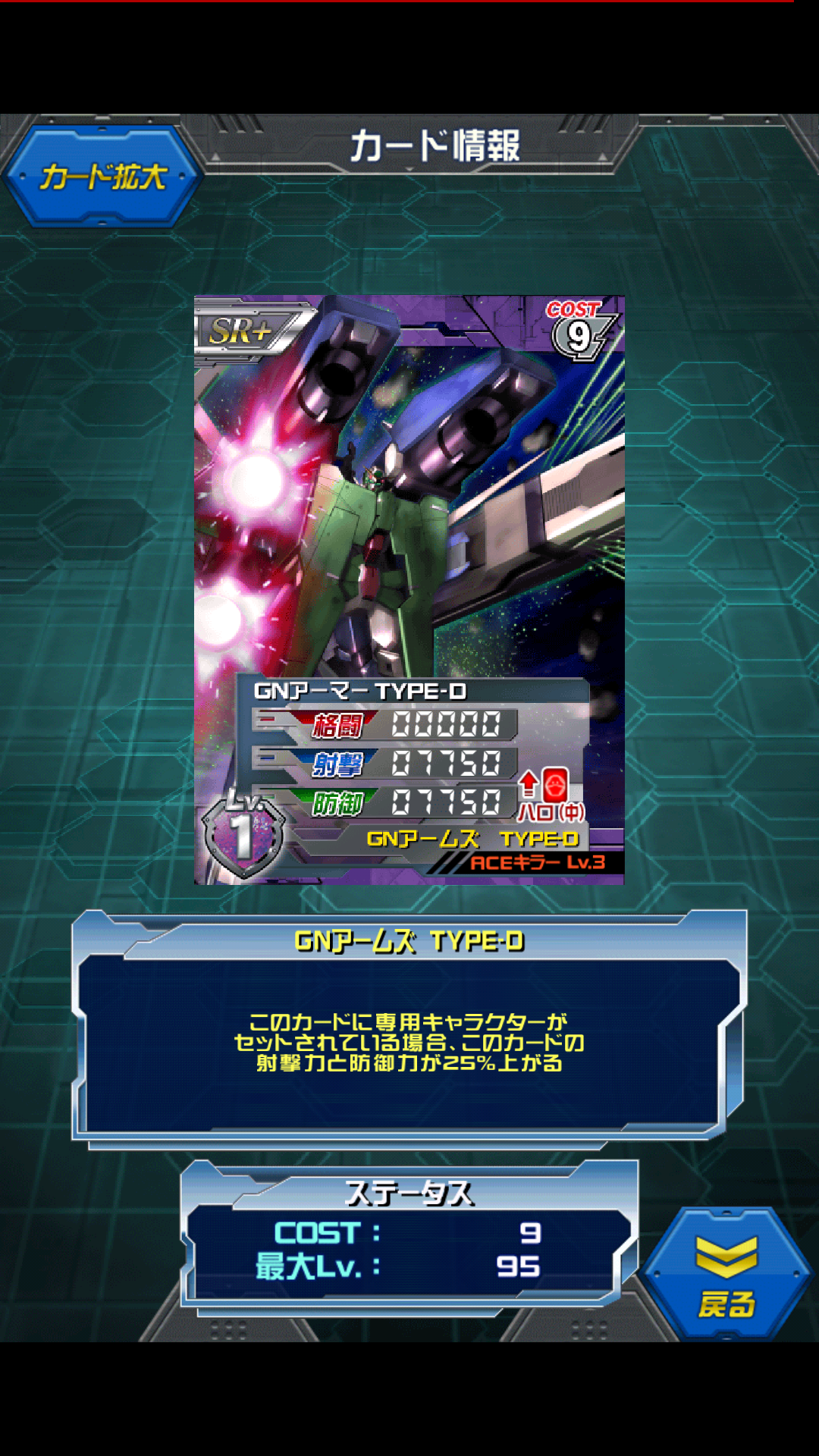 GNアームズ TYPE-D 三軍合同軍事演習ガチャ景品 紫ユニットで珍しい大型ユニットです MAX値は0/11000/11000 専用キャラ:ロックオンをセットすれば0/13750/13750 ガデラーザを大きくしたユニットです。 今回のロックオンをセットすれば 0/19250/19250と悪くない数字になり射撃防御機としては十分な数字 ただコスト9という大きさがネック あくまでもURアルヴァアロンが無くて困ってる人の代用品かと 最終決戦でデュナメスに装備された デンドロビウムから始まった本体オマケの強化ユニット 「狙い撃つ」ことが主体のデュナメスに対して 圧倒的な弾幕、高出力ビームで圧倒するTYPE-D そのためいつものセリフではなく「今は狙い撃てないんでね、圧倒させてもらうぜ」 というセリフが出てきたのでしょうね [0回]PR