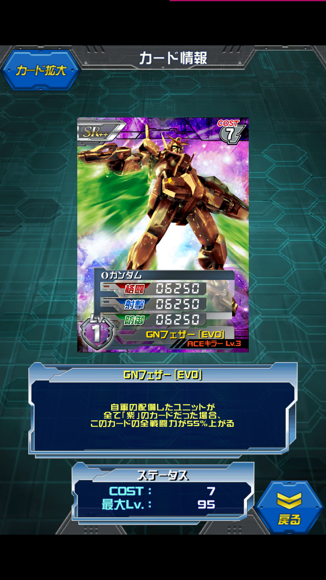 0ガンダム 0ガンダムのエボ機体 あの紫のACE、0ガンダムがさらに強化されて帰ってきた! MAX値はALL9000 自軍が全て紫ならALL13950 以前はALL12750だったのに対して1200上昇 ランキング報酬だった★3パーフェクトガンダムに迫る勢い どのぐらい凄いかと言うと ラジエル第2形態を作る理由を無くすぐらい凄いです さすがにケルディムサーガやアリオスアスカロン等には勝てませんが ド平均で高ステータスを生かして紫単なら1~2枚入れておいても 損は無いかと 刹那が憧れたガンダム 0ガンダムの他にも1ガンダムや1.5ガンダムがいます。 これはアイガンダム、アイズガンダムと読むようです。 私は全く読めませんでした…( 一一) 00とは関係ないですがガンダム見てるとギリシャ文字に詳しくなりますよね Z、ν、Ξ、Δ、などなど・・・ [2回]PR