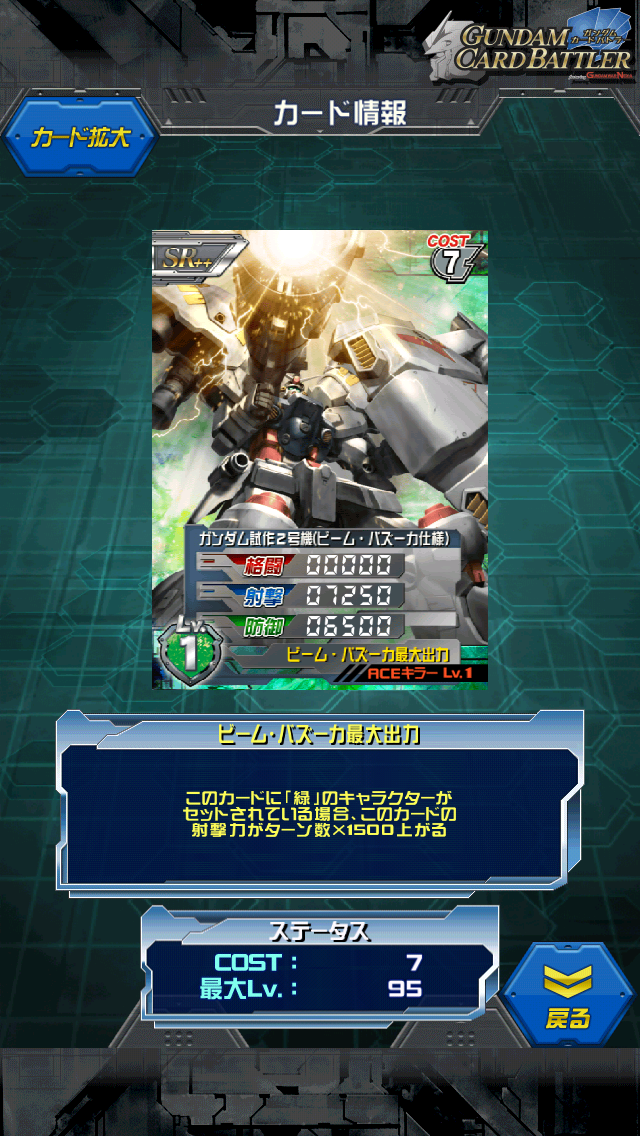 ガンダム試作2号機(ビーム・バズーカ仕様) 試作2号機 ↓ 試作2号機(MLRS仕様) と来たから最後は核だろ!と思っていたらまだ焦らされた思い出の2号機 MAX値で0/10500/9500 スキルはターン制なので3ターン目には 0/15000/9500となる ガトーはノイエジール向きなので格闘値が勿体ない かといって他に乗るとしたらジオンの遺児シャアとかかなぁ 期待された核でもないし キャラも用意されていないある意味不遇の緑機体 とはいえ現在の緑の中では射撃上位なのは間違いないので なんとかして使ってあげたいので射撃防御ガトーが出ることに期待 まぁジオングやエルメスが出た瞬間にお払い箱の可能性が高いのだが アトミックバズーカを装備するのはいつの日か・・・ [0回]PR