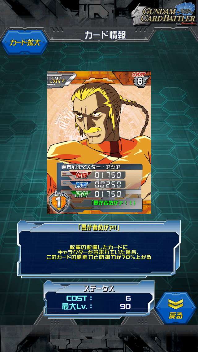 東方不敗マスターアジア 第一回バトルアリーナイベント5000P達成報酬 スーパーモードになった師匠です。 MAX値は3250/500/3250 相手キャラセットで5525/500/5525です。 微妙にグラハムに格闘が負けているのが気になりますが 防御も上がる点で勝っていることにしましょう。 今回のURマスターと言わずにどのマスターでも乗せて問題ないステータスです。 射撃の500は何に使ったらいい数値なのかわかりません… ドモンの師匠東方不敗、本名シュウジ・クロスです。 生身の強さがちょくちょくネタにされていますが 機体に乗った強さももはや伝説級です。 東方不敗との最終決戦「さらばマスターアジア、暁に死す」では 思わずコンテに「完」の文字を書いてしまうぐらいベストバトルだったとのこと まぁ確かに最初から強さアピールしていた東方不敗のあとに ぽっと出てきたウルベが出てこられても。。。 [0回]
