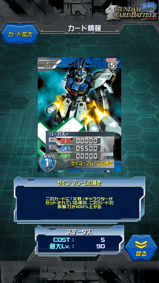リ・ガズィ サイコフレームガシャ景品 恐らく前回のアリーナイベントでよく目にしたのではないかと思います。 ケーラが乗っていた半壊リガズィに チェーンがアムロにサイコフレームを渡すために乗ったのですが 途中ハサウェイがクェスに襲われているのだと思ってしまい 腰のグレネードを撃った瞬間のカードです。(長い MAX値は0/7500/0と射撃特化過ぎた機体 さらにスキルは女性が乗れば射撃15000というコスト5では化け物のような射撃値に さらにさらにチェーンがコスト2ながらも専用機体に乗せれば射撃が3000上がるため コスト5/2で射撃19000という壊れカードになってしまう 低レベルでもデッキに入れることができるし、 高Lvの方はデッキの穴埋めに最適といった使い勝手が良いカード 弱点は格闘と防御が0なこと 当たり前ですが防御時にこのカードだけを引くと死ねます(笑 ただ、強みも格闘と射撃が0なこと オートで間違えて格闘に出たり防御に出たりしない。。。のですが 見た目の射撃は7500なので他の射撃機に出番を奪われてしまうこともしばしば 使い方にお気を付けください 説明は最初にずらずら書いた通りのカード このグレネードでαを葬ったことからついた射撃値だと思われる。 ただこの後ハサウェイに落とされてしまい 渡すはずだったサイコフレームは宙域を漂うことに。。。 [0回]PR