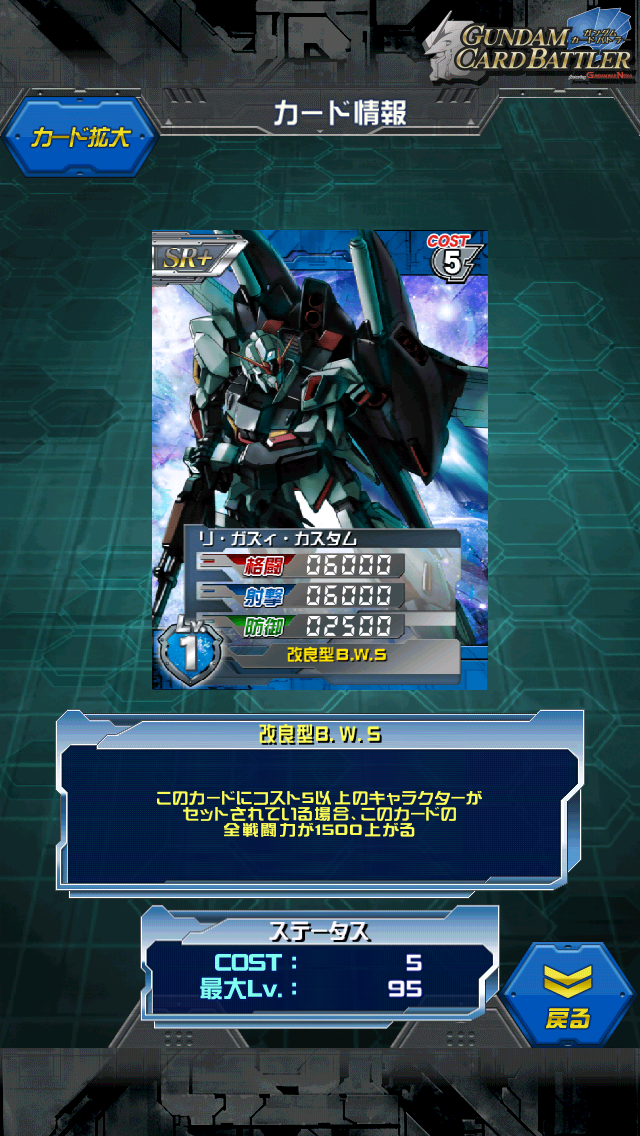 リ・ガズィ・カスタム リ・ガズィ・カスタムのエボ機体 MAX値は8500/8500/3000 コスト5のキャラセットで10000/10000/4500 νの影に隠れて地味だが意外と使えるアムロ専用機カード 青で不足がちの格闘をコスト5なりに補ってくれる 射撃も10000の数値なので確実に発動する点を考えると優秀 多分…逆シャアMSVかな BWS(バック・ウェポン・システム)を使い捨てではなく 変形機構として取り込んだリガズィ ちなみにリガズィという名は 「(Re)リファイン・(G)ガンダム・(Z)ゼータ」の頭文字を取ってReGZ(リ・ガズィ)です。 [0回]PR