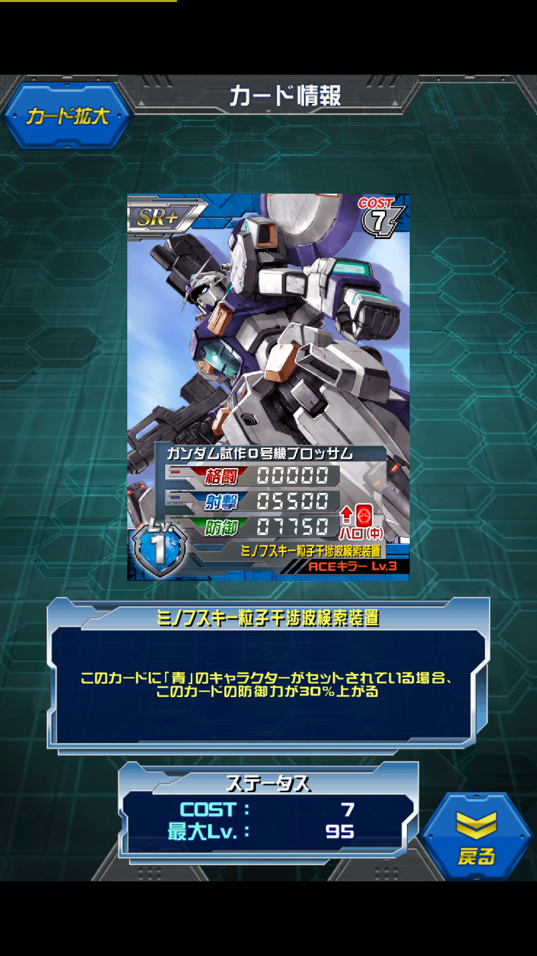 ガンダム試作0号機ブロッサム 0083 アナハイムロゴガシャ景品 アニメでは1~3号機でしたが何食わぬ顔で出てきました0号機 MAX値は0/8000/11000 青のキャラセットで0/8000/14300 取った人には悪いのですが見た瞬間「ホントに数字合ってる?」でした コスト5のデルタより防御が低い、割に射撃は2000だけ高いため コストは6なんじゃないか?とか 実はSRなんじゃないか?とか 射撃も上がるんじゃないか?とか思ってしまいました。 パイロットはジャック・ベアード R+を乗せると常時2000/13100/19750 SRを乗せるとオート時1000/14100/20400 どちらかお好きなほうをどうぞ いつの間にか現れたガンダム開発計画の0号機 ブロッサムは「花」という意味 あまりに分からん!と書いてしまうのも忍びないので少し調べてみましたが ザメル部隊に大破させられてるんですね… その結果から詰め込みすぎはよくない、という教訓が生まれて 1~4号機は色々な特化主体になったとか [0回]